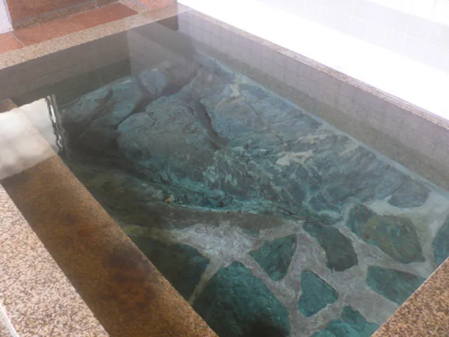 - 足元湧出:浴槽の底板の間から源泉が自然湧出する、本物の足元湧出源泉。