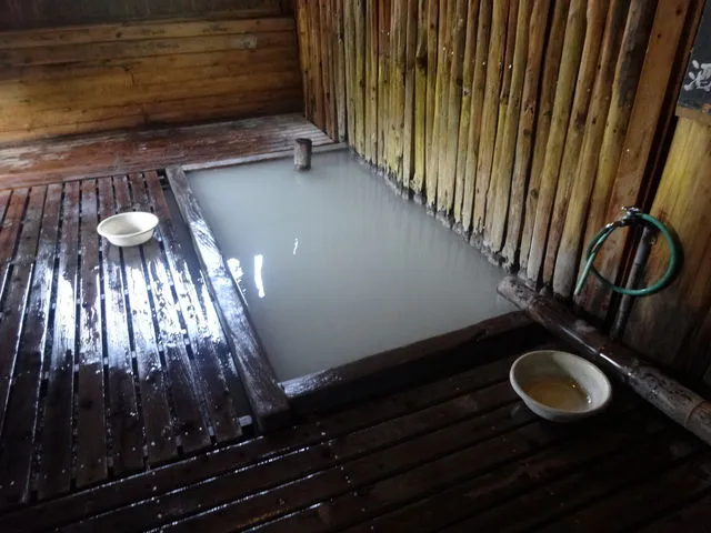 - どんなお風呂:砂利の下から湧く透明度の高い湯。すのこ設置あり。